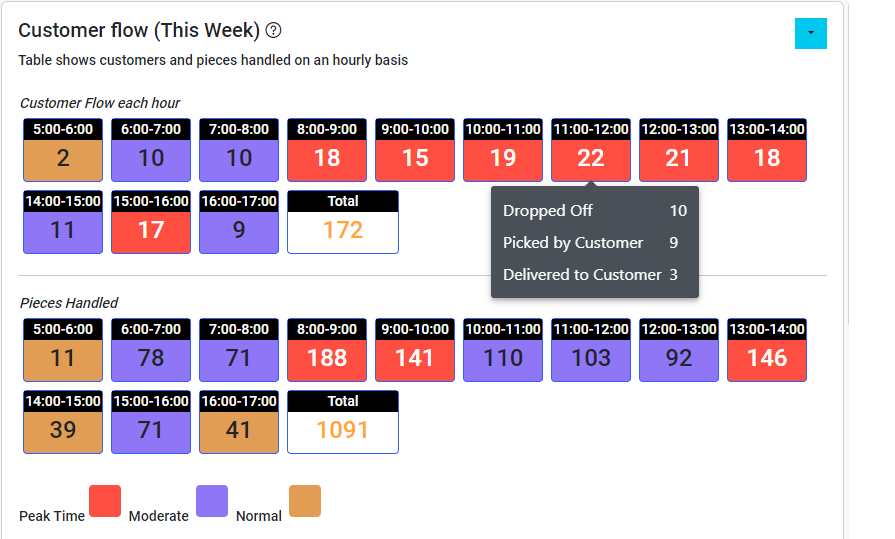 This allows you to view scans per hour in productivity stations, total pieces touched by an employee within a timeframe, number of garments repaired in a day etc…