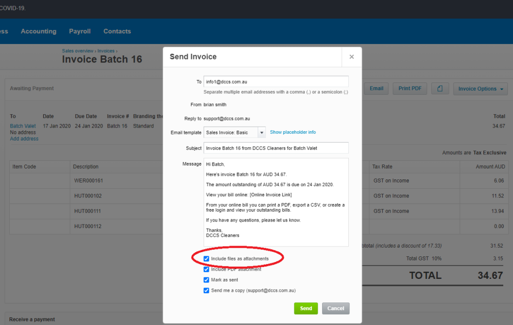 When MCP (MyCleanPOS) sends the Batch invoice to Xero it also sends the PDF batch report to Xero as an attachment to the Batch invoice.