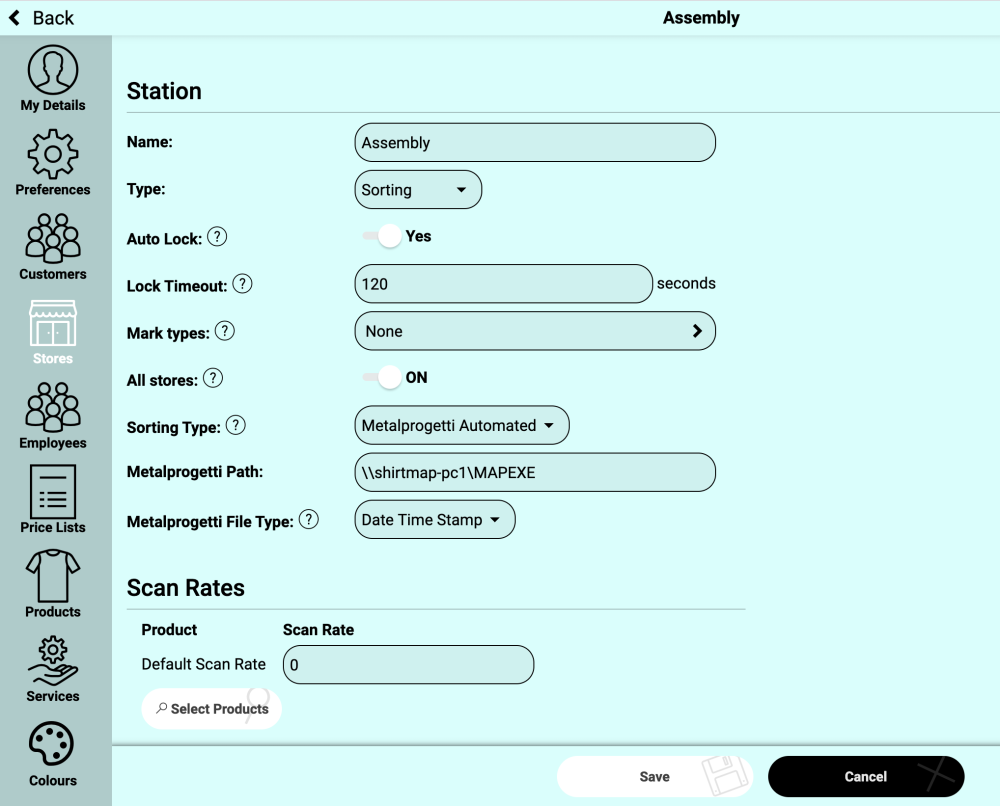 In the example below the Assembly Station is where you can enable your conveyor system, whether a CASort, Metalprogetti, or, other Conveyor system.