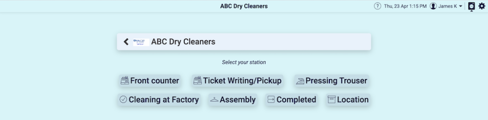 Having selected the ACB Dry Cleaners store, the Store screen will e launched.