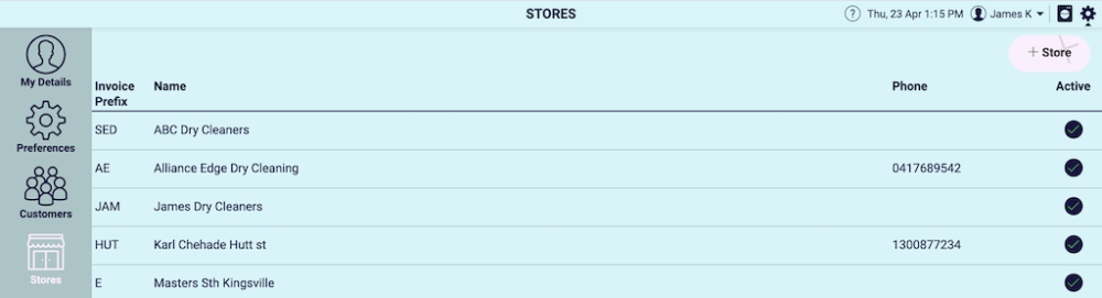 Select your Store from the list below where you wish to enable a conveyer. Again we will select ABC Dry Cleaners.
