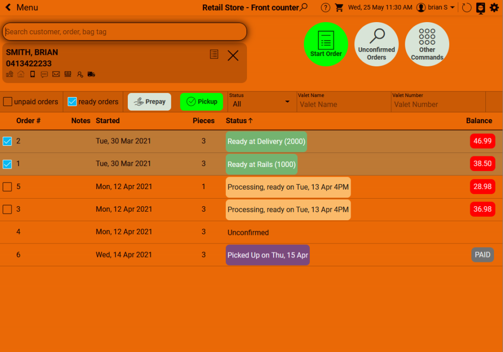 When a customers account is opened, ready orders are pre-selected for a quick pickup