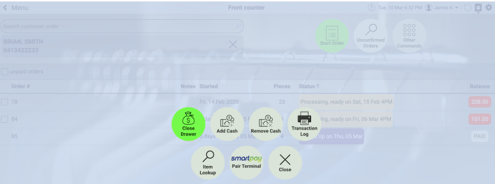 When you select the Other Commands option there are a number of MyCleanPOS administration, transaction, End of Day, and, Point of Sales management tools available as shown in the following screen