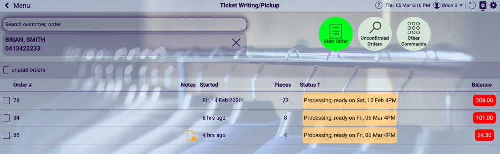 At the Point of Sale Station, whether selecting Front Counter, or Ticket Writing/Pickup options, you can enter the customer first name, last name, phone number, or ,scan the ticket to identify the customer.