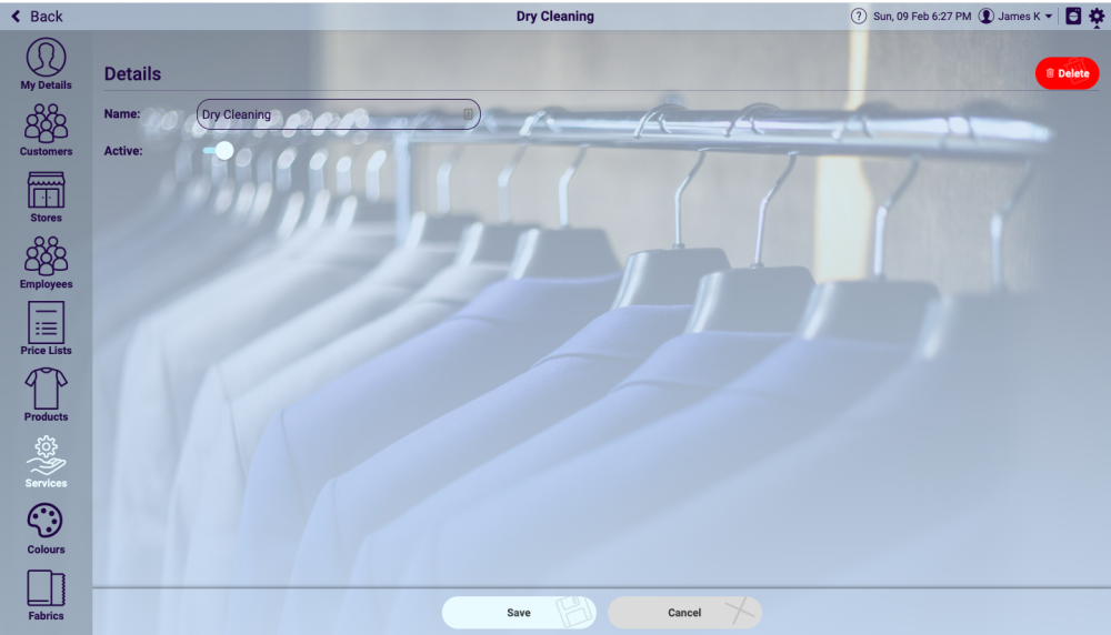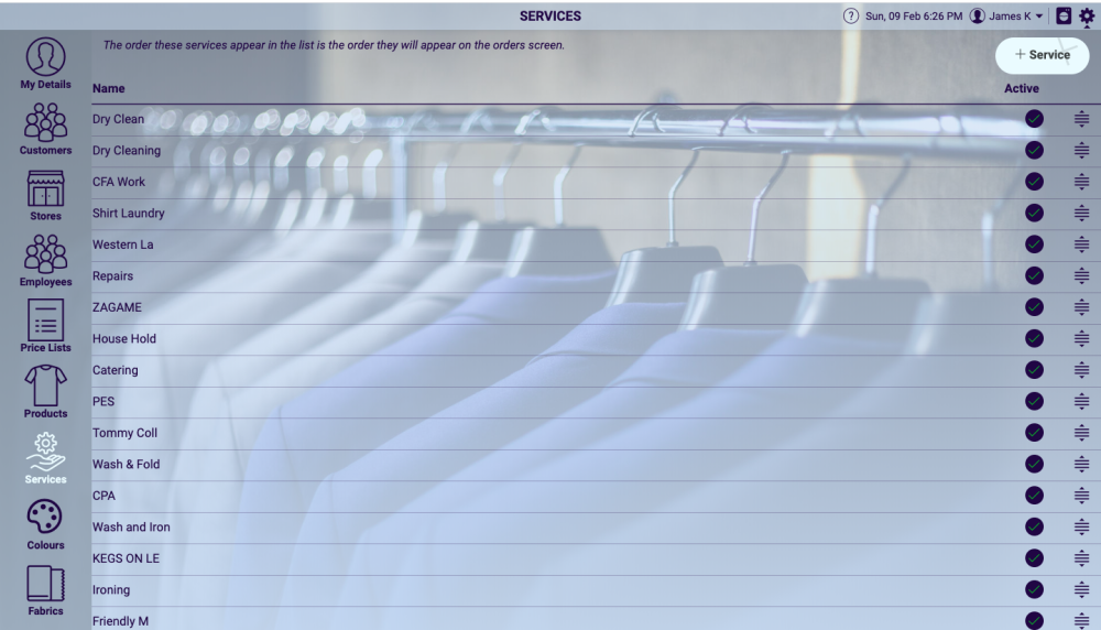 Services are types of Services – eg Drycleaning, Wash and Fold, Repairs, Press Only