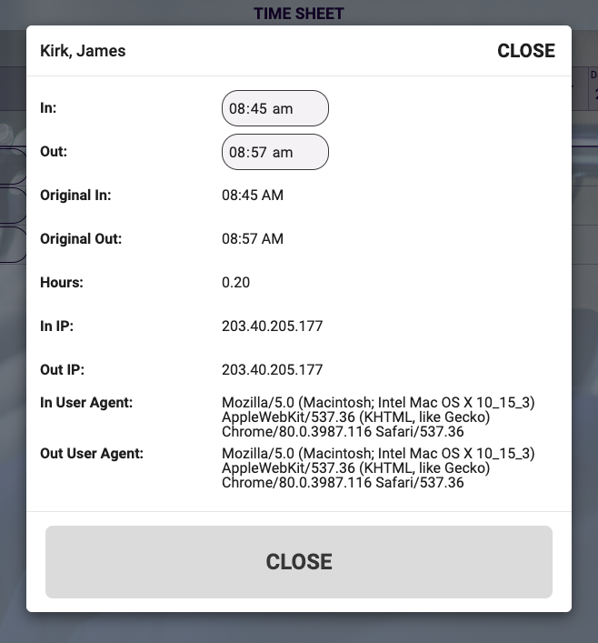 MyCleanPOS will list the clock on – clock off times of your staff as shown below.