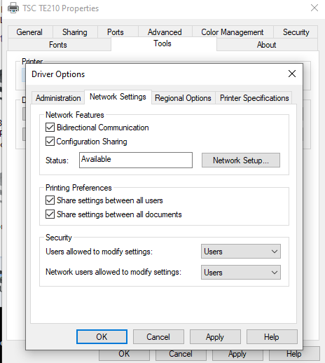 Set the printers options to be shared amongst users and documents