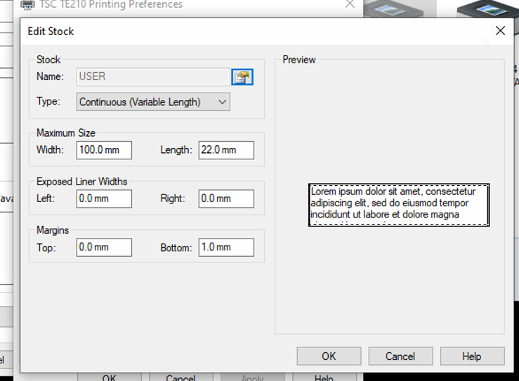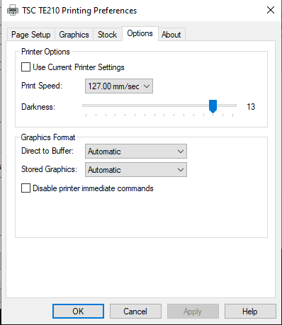 TSC TE210 Tyvek Garment tag printer settings: